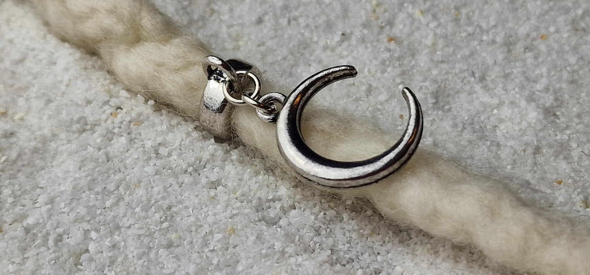 Dreadring aus Metall mit kleinem Mondsichel-Schmuckanhänger;