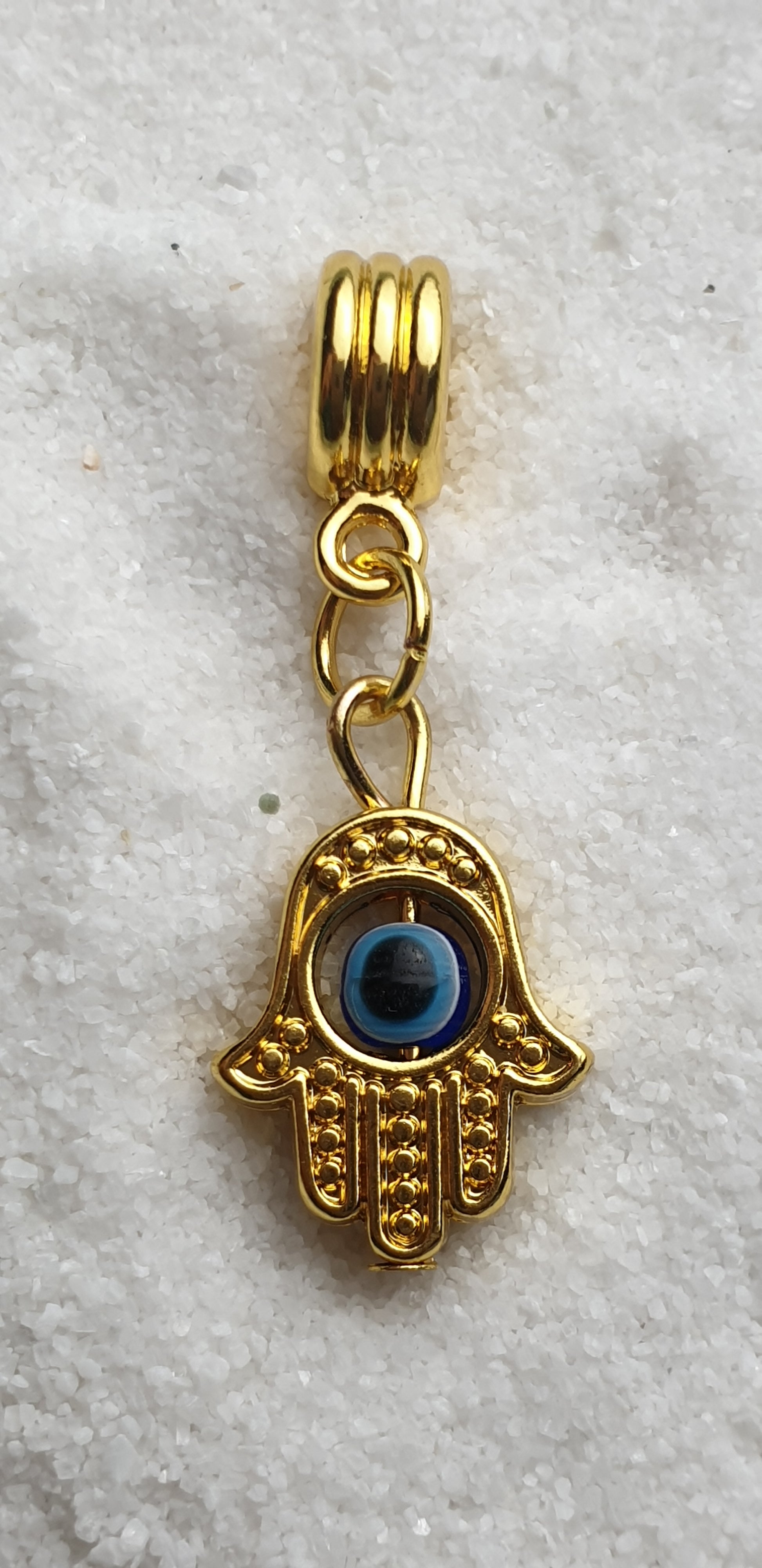 FATIMAS HAND Metall Dreadschmuck / Dread Charm / Flecht Perle und Anhänger mit drehbarem Glücksauge