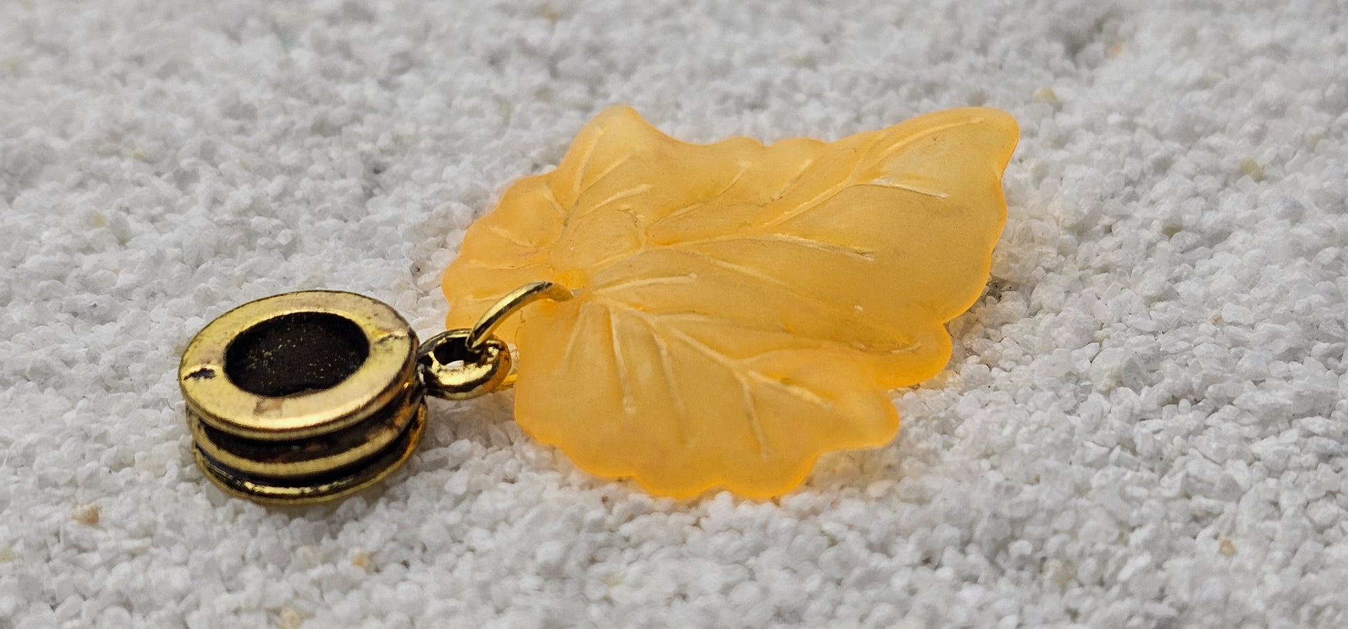Dreadschmuck / Dreadring / Dread Charm / Flecht Perle mit Acryl-Anhänger. Die Blattform ist einem Efeublatt nachempfunden und detailliert mit Blattadern auf Vorder- und Rückseite ausgeformt. Das Material ist halbtransparent und leuchtet bei Lichteinfall in brillianten Farben oder zarten Pastelltönen, die Oberfläche ist leicht mattiert und samtig. Der Anhänger ist superleicht und auch für empfindliche Haaransätze sehr gut geeignet.