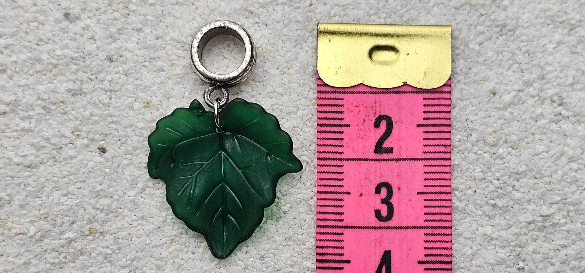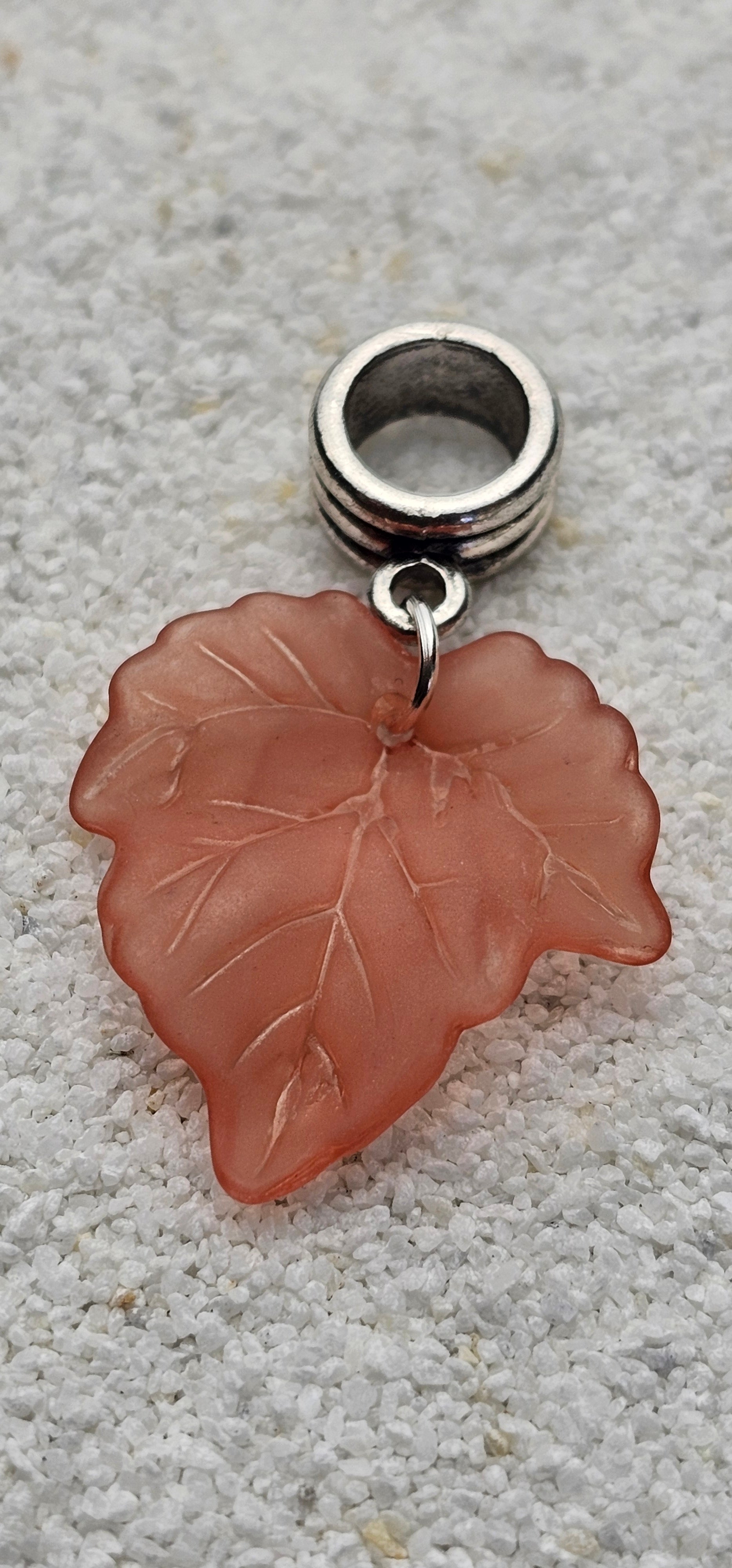 Dreadschmuck / Dreadring / Dread Charm / Flecht Perle mit Acryl-Anhänger. Die Blattform ist einem Efeublatt nachempfunden und detailliert mit Blattadern auf Vorder- und Rückseite ausgeformt. Das Material ist halbtransparent und leuchtet bei Lichteinfall in brillianten Farben oder zarten Pastelltönen, die Oberfläche ist leicht mattiert und samtig. Der Anhänger ist superleicht und auch für empfindliche Haaransätze sehr gut geeignet.