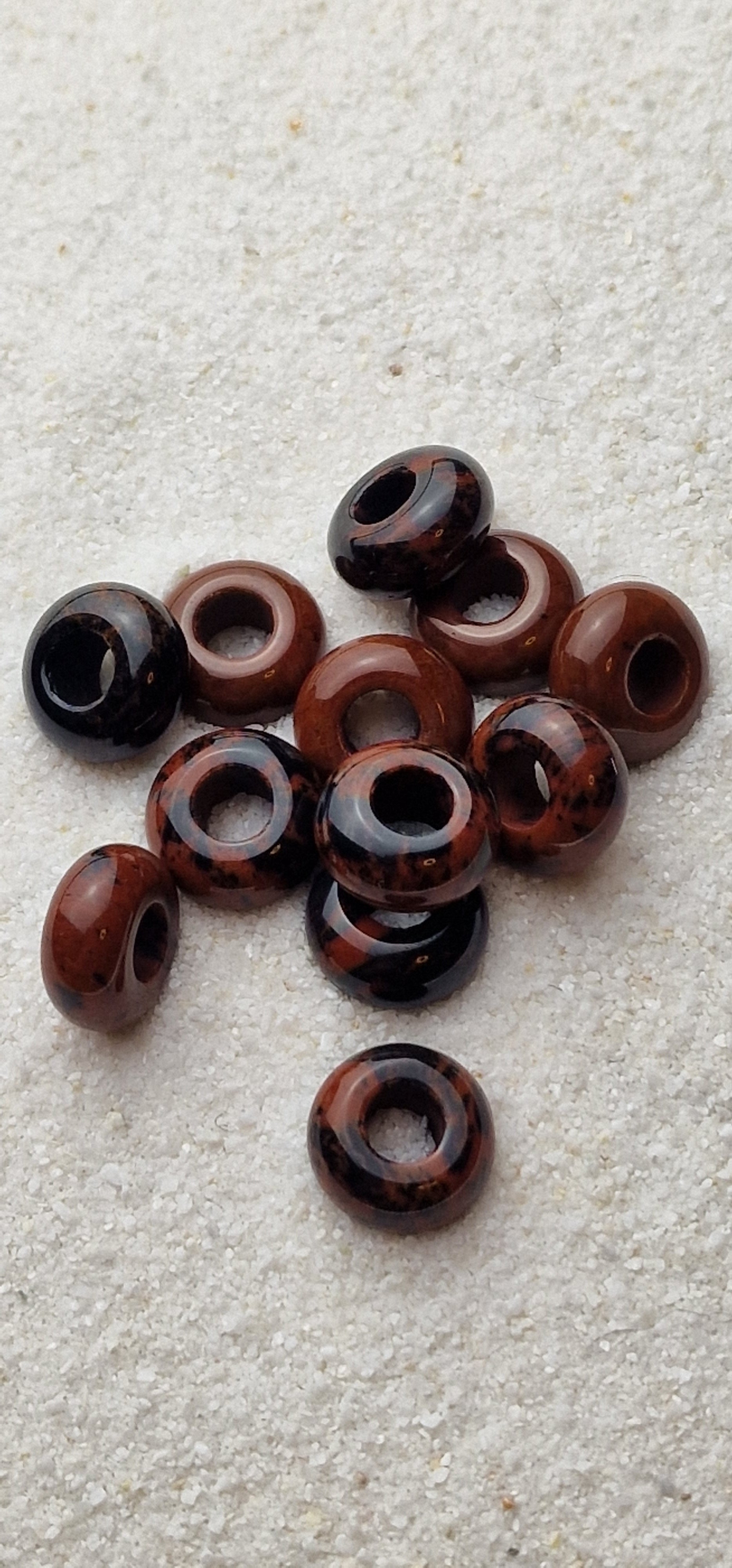 MAHAGONI OBSIDIAN Naturstein Dreadschmuck / Dread Perle / Flecht Perle aus vulkanischem Obsidian Glas