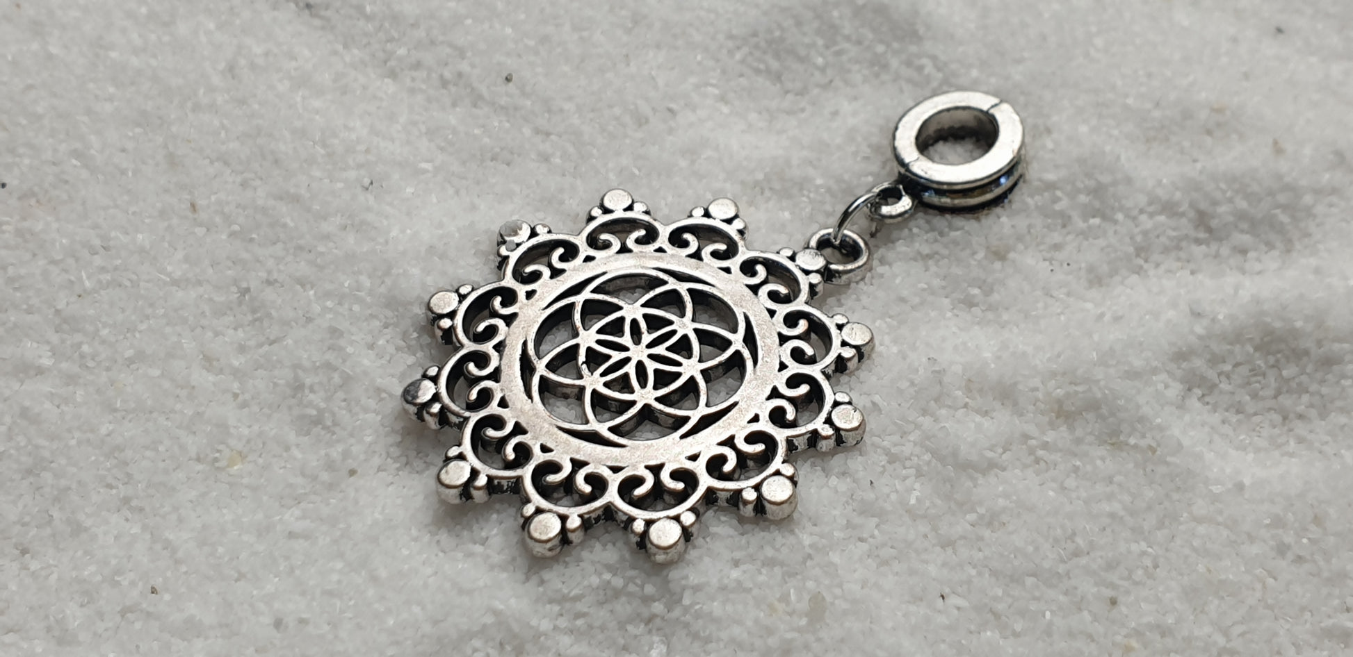 MANDALA Metall Dreadschmuck / Dread Charm / Flecht Perle und Anhänger mit großem Mandala Anhänger