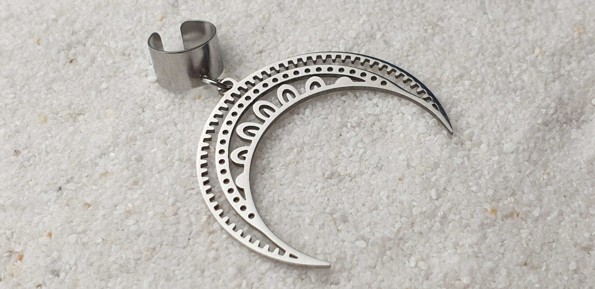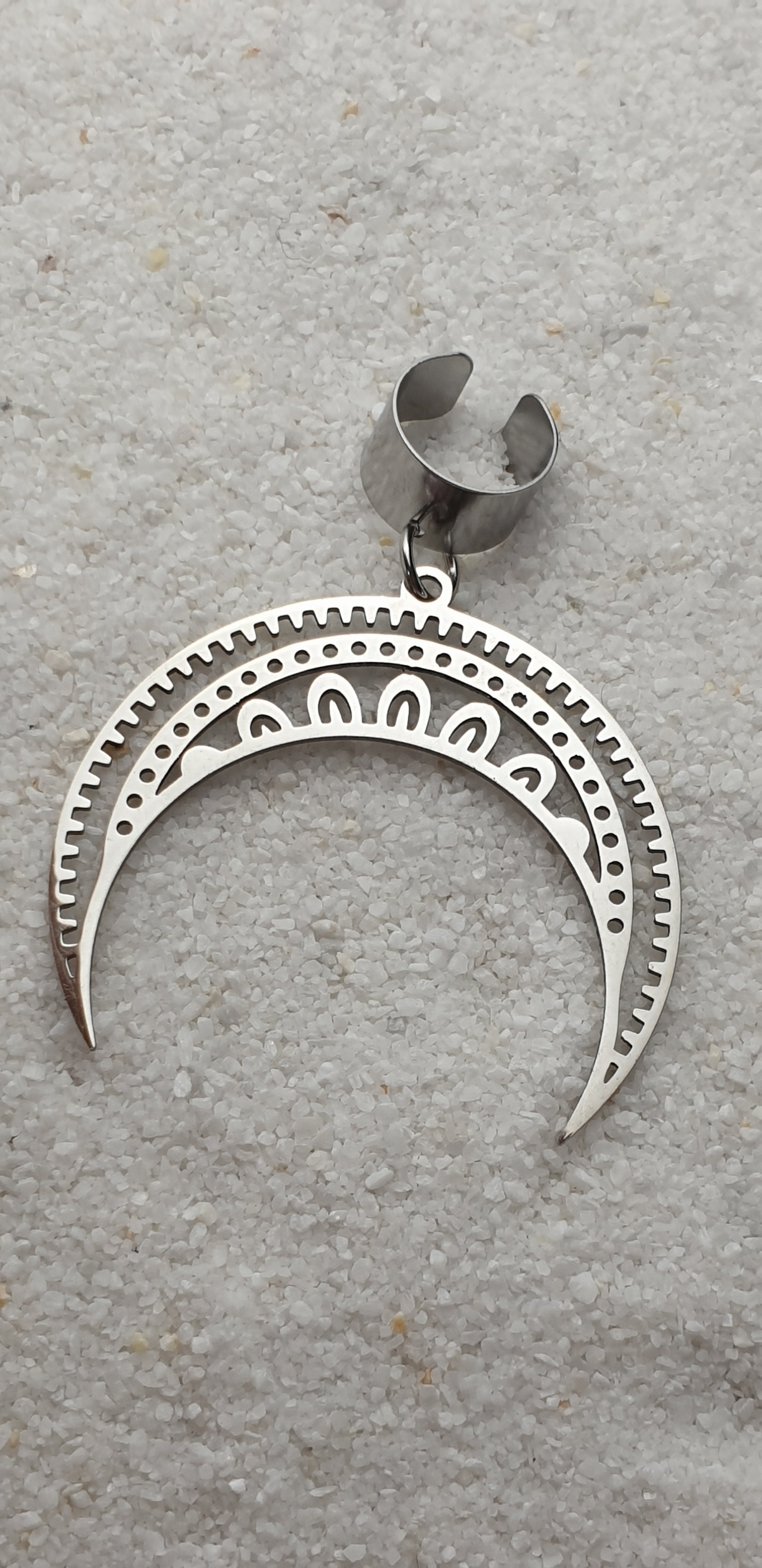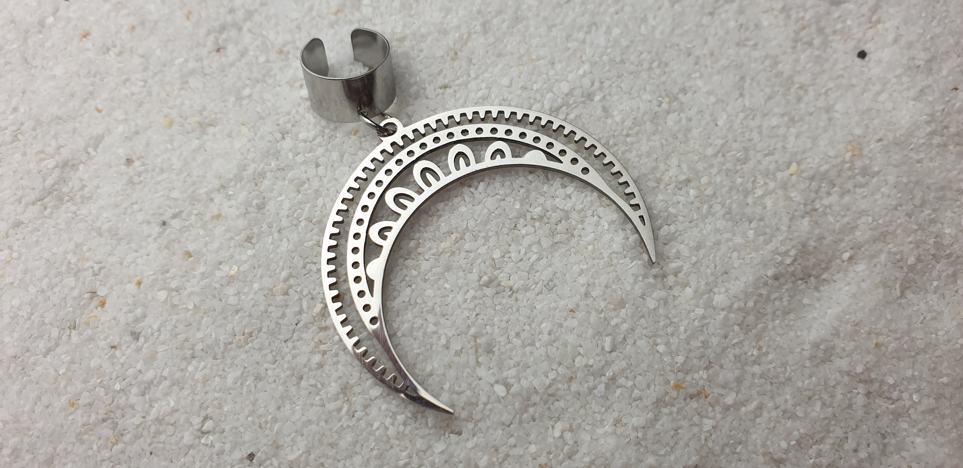 MOON GODDESS Ear Cuff mit riesigem Sichel Mond Schmuckanhänger aus Edelstahl
