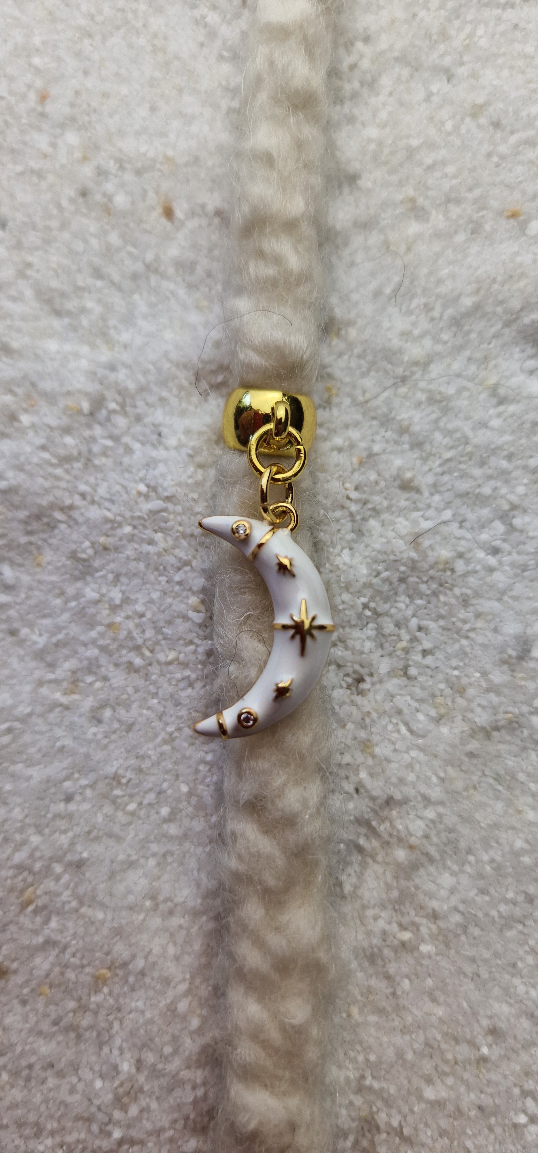 MOON Metall Dreadschmuck / Dread Charm / Flecht Perle mit emailliertem Mond Anhänger