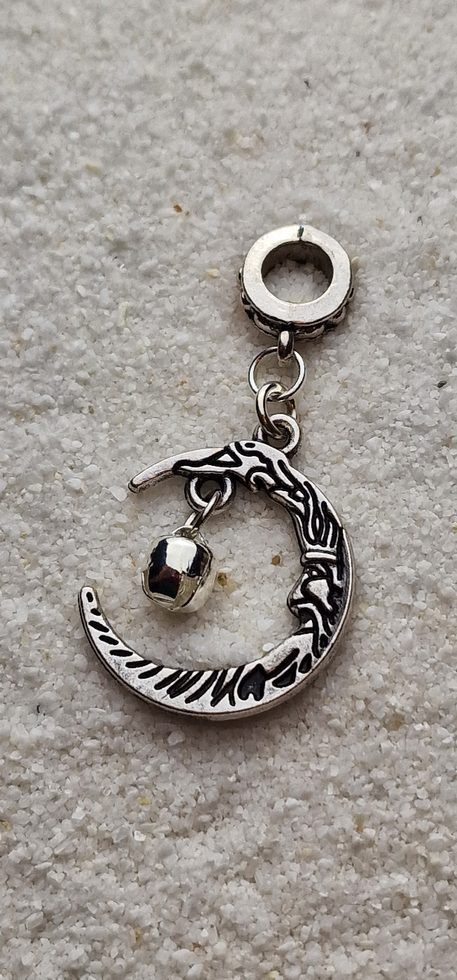 JINGLE MOON Metall Dreadschmuck / Dread Charm / Flecht Perle und Anhänger mit Mondgesicht und kleiner Glocke