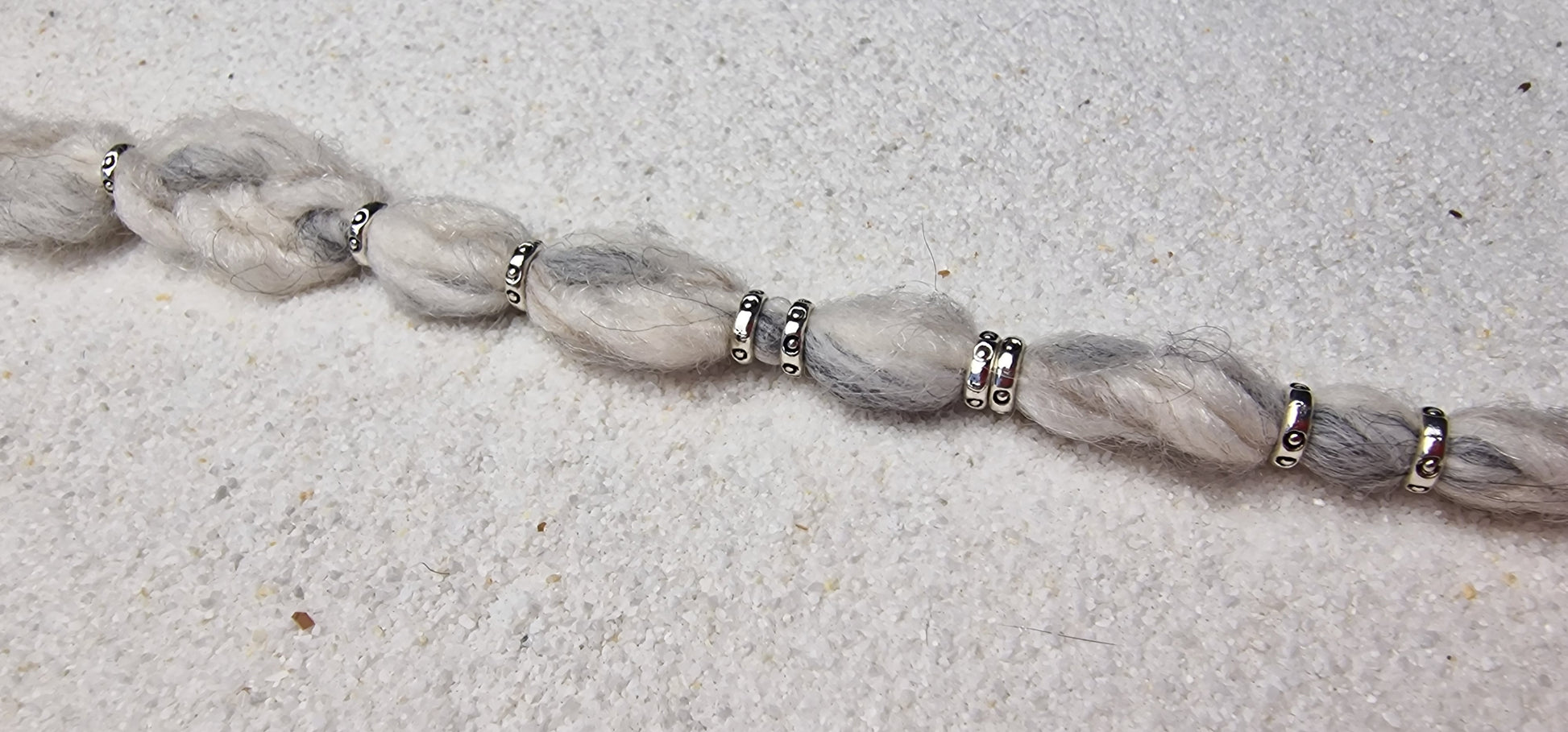 Kann auf Dread- und Flechtzöpfe aufgezogen oder miteingeflochten werden;