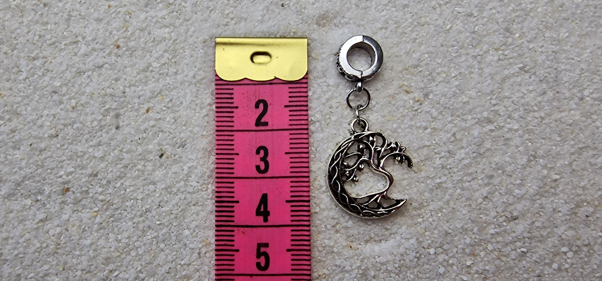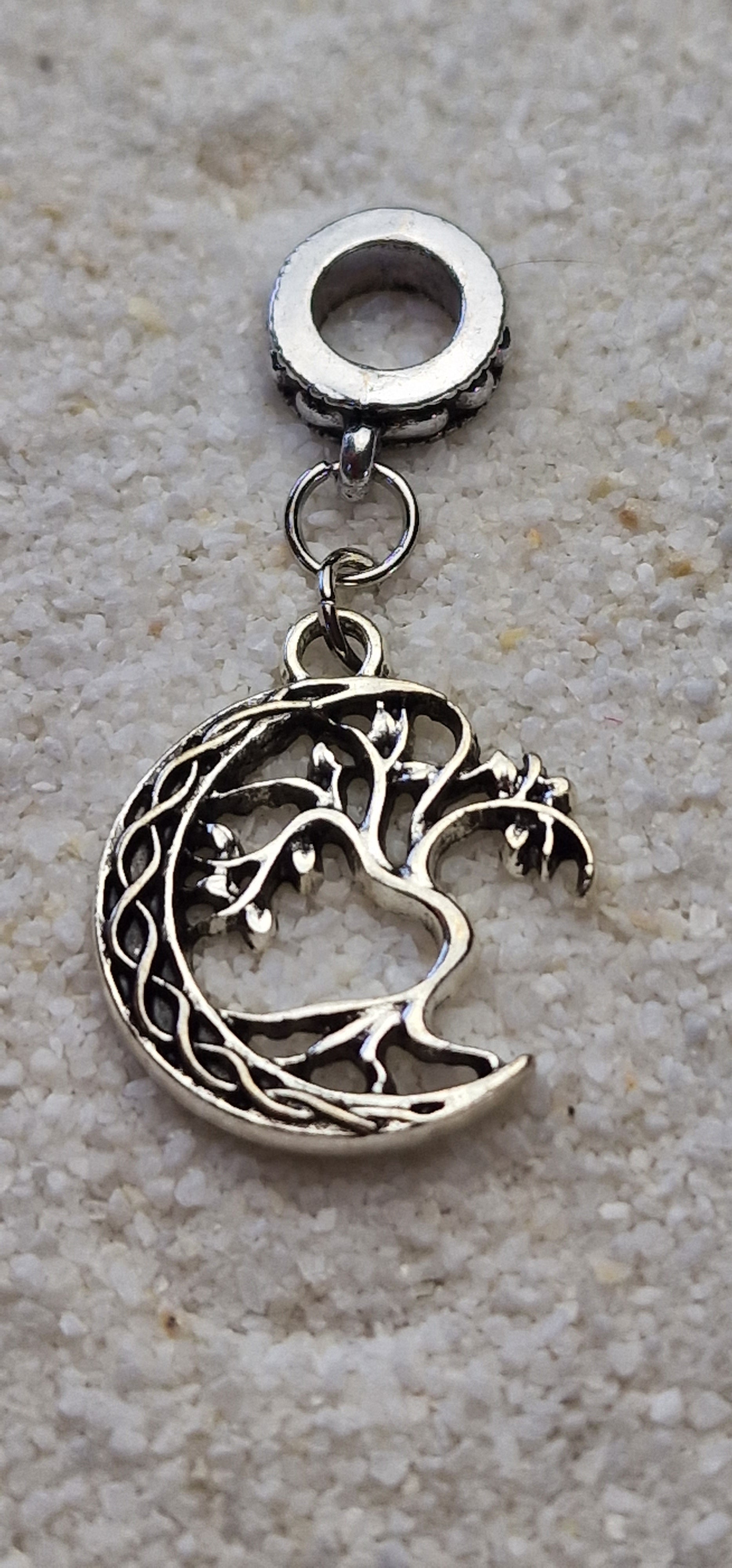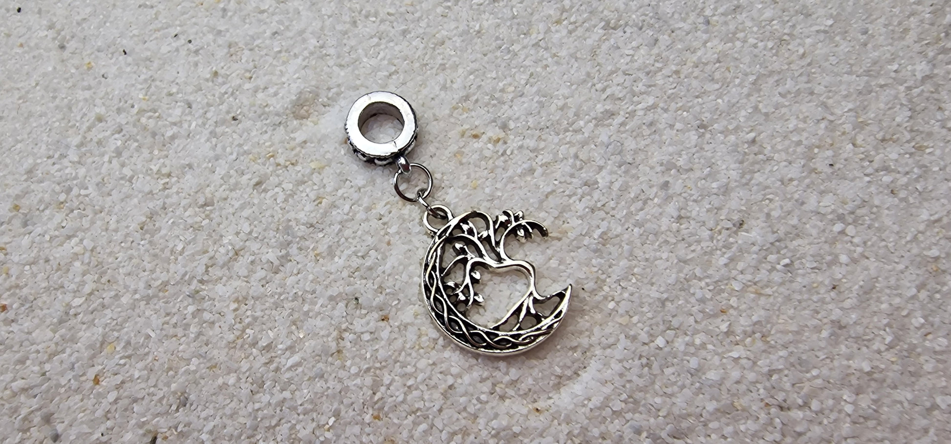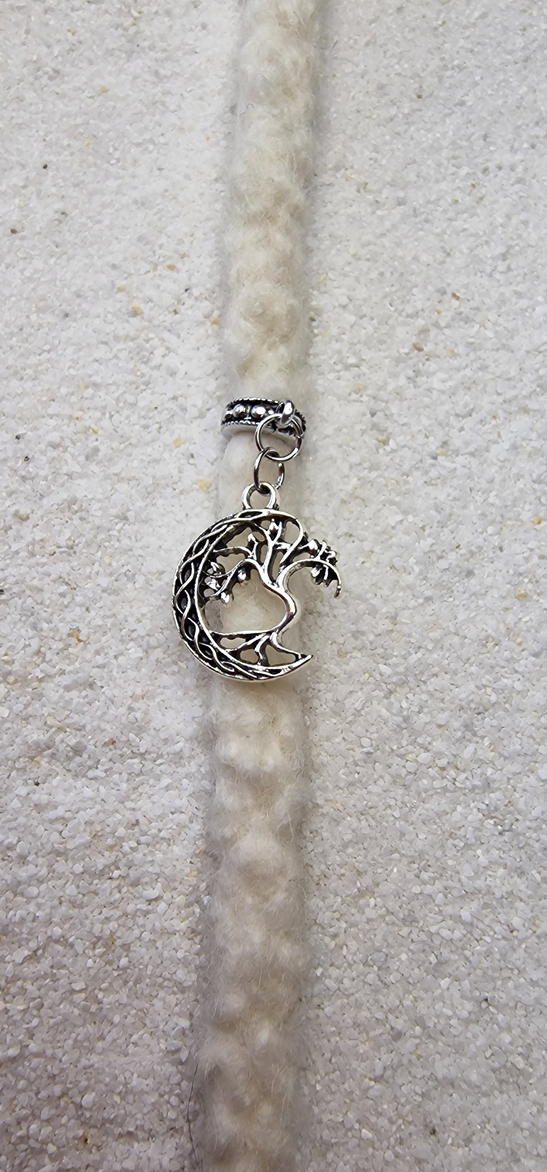 RAUHNACHT Dreadring / Dreadschmuck / Flechtperle aus Metall mit kleinem Halbmond-Schmuckanhänger und Tribal-Baum. Kann auf Dread- und Flechtzöpfe aufgezogen oder miteingeflochten werden;