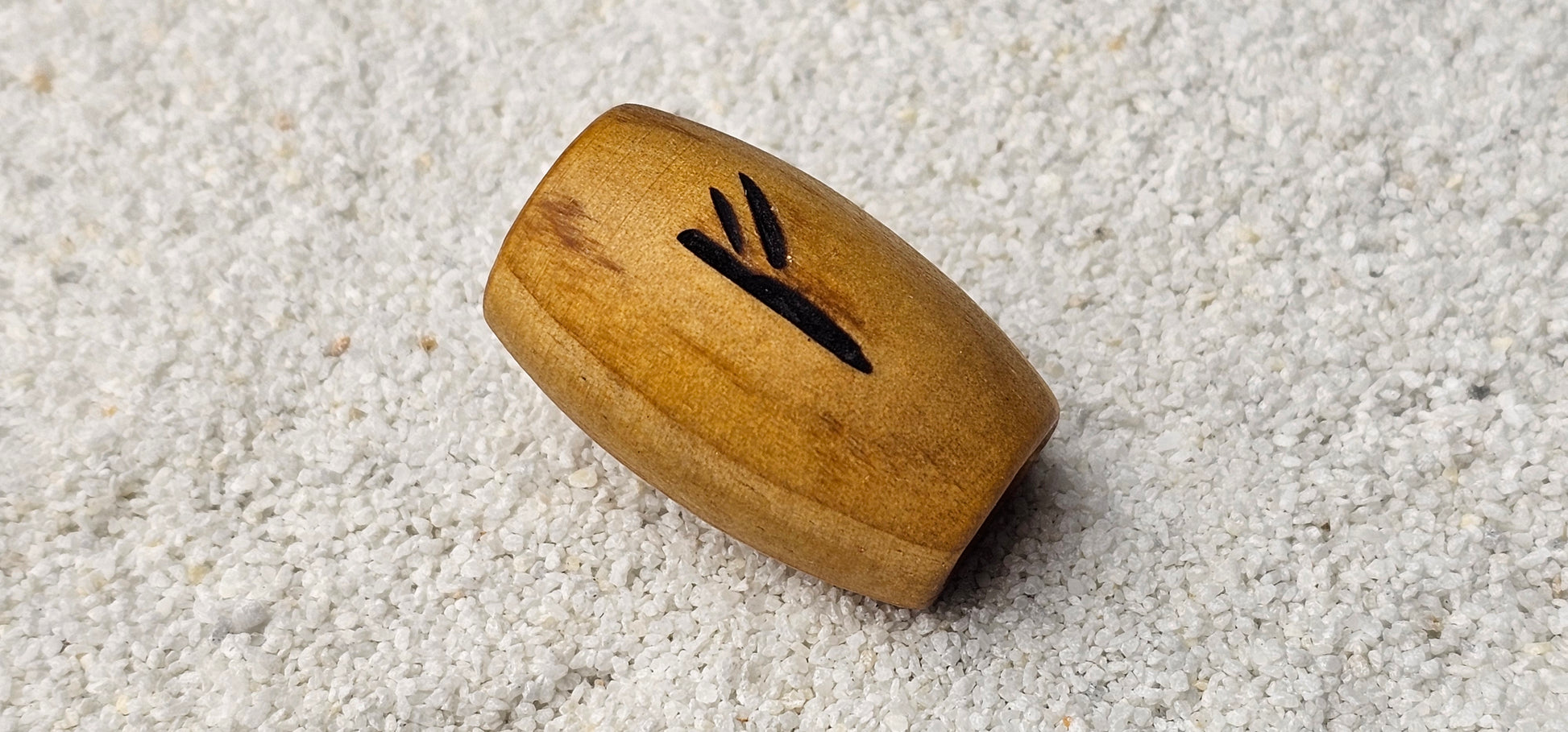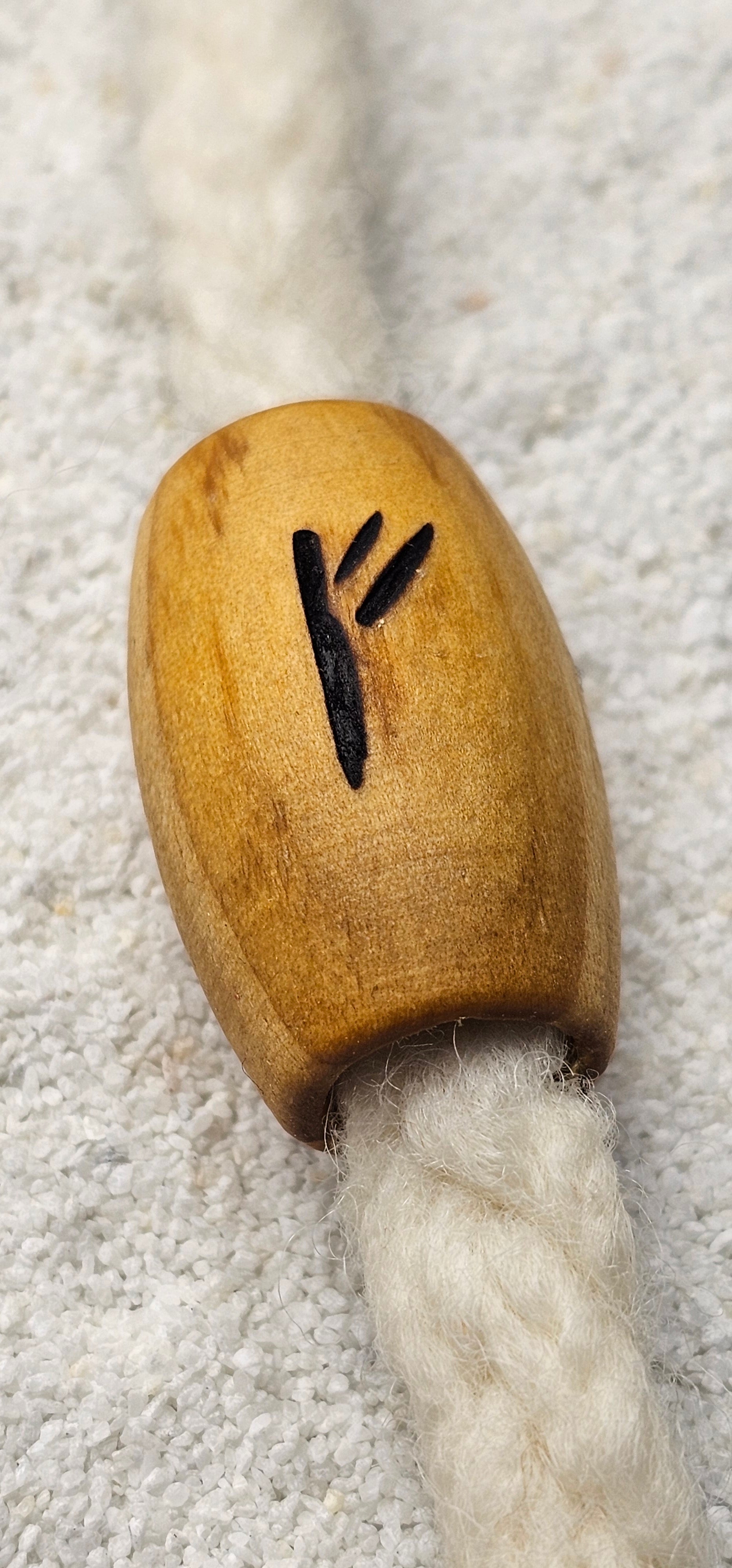 Riesige Dreadperle aus glatt poliertem Kiefernholz mit eingebrannter Rune;