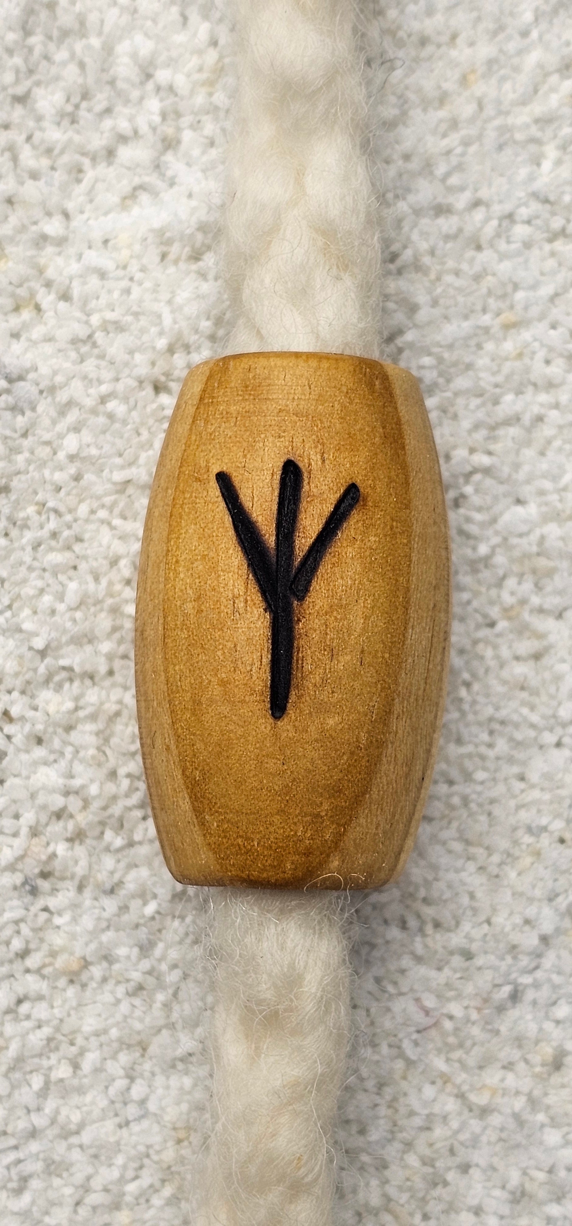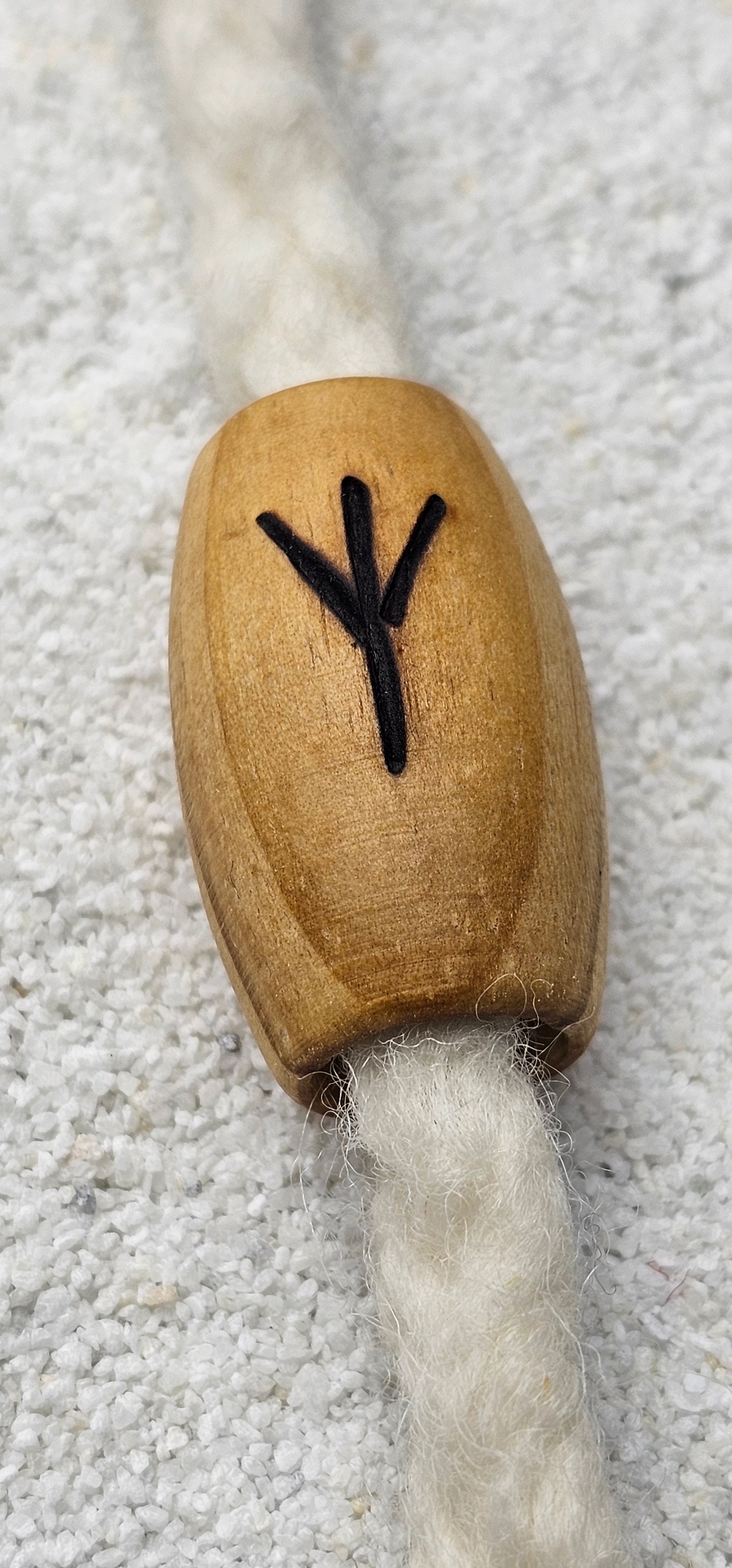 Riesige Dreadperle aus glatt poliertem Kiefernholz mit eingebrannter Rune;